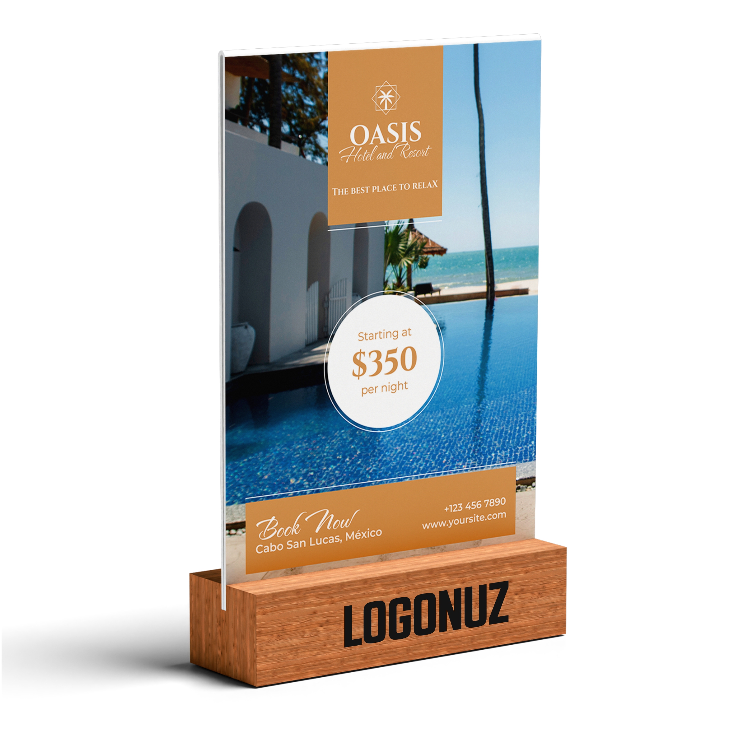 Ahşap Taban Pleksi Föylük modelleri, masaüstü menü, broşür, fiyat listesi ve bilgilendirme kartları için şık, dayanıklı ve profesyonel bir sunum çözümüdür.