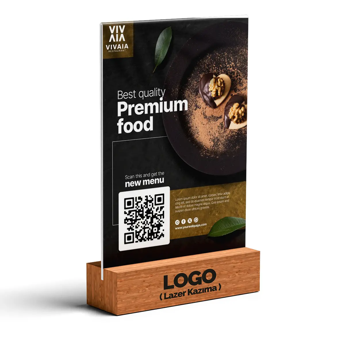 Restoran QR Kod A6 Pleksi Föylük (Ahşap Taban)