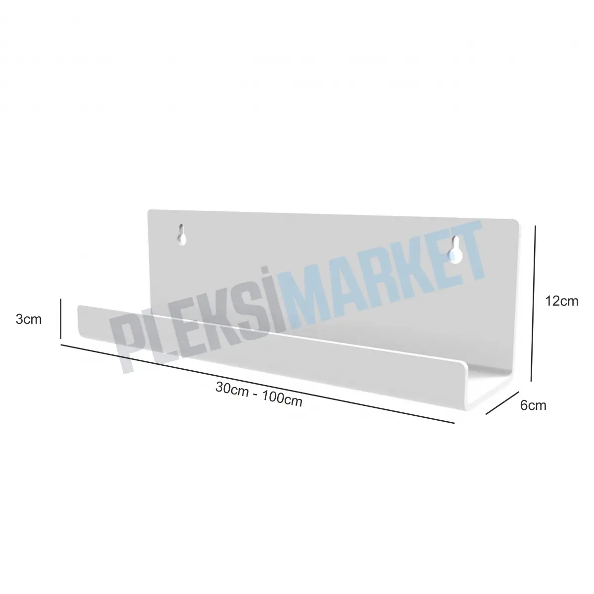 30 cm’den 100 cm’ye kadar değişen uzunluk seçenekleri ve 4mm ile 5mm pleksi kalınlığı sayesinde hem ev hem de ticari alanlarda pratik bir kullanım sunar. Mutfak, banyo, mağaza, kafe ve ofislerde ürün sergilemek veya depolamak için idealdir.